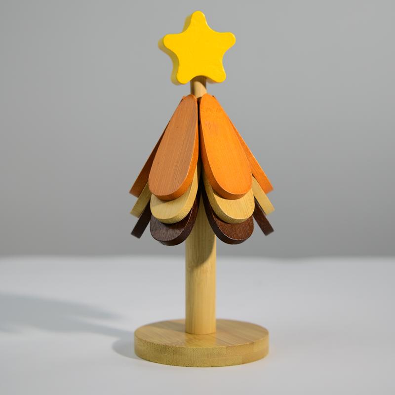 Each wooden leaf opens and closes smoothly around a central pivot that keeps everything secure.